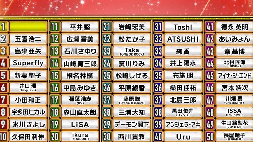 日本一歌がうまい男性歌手は誰ですか?のランキング