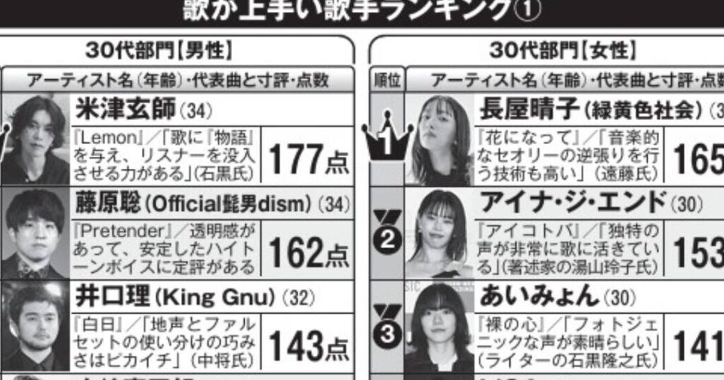 日本の著名なシンガー
