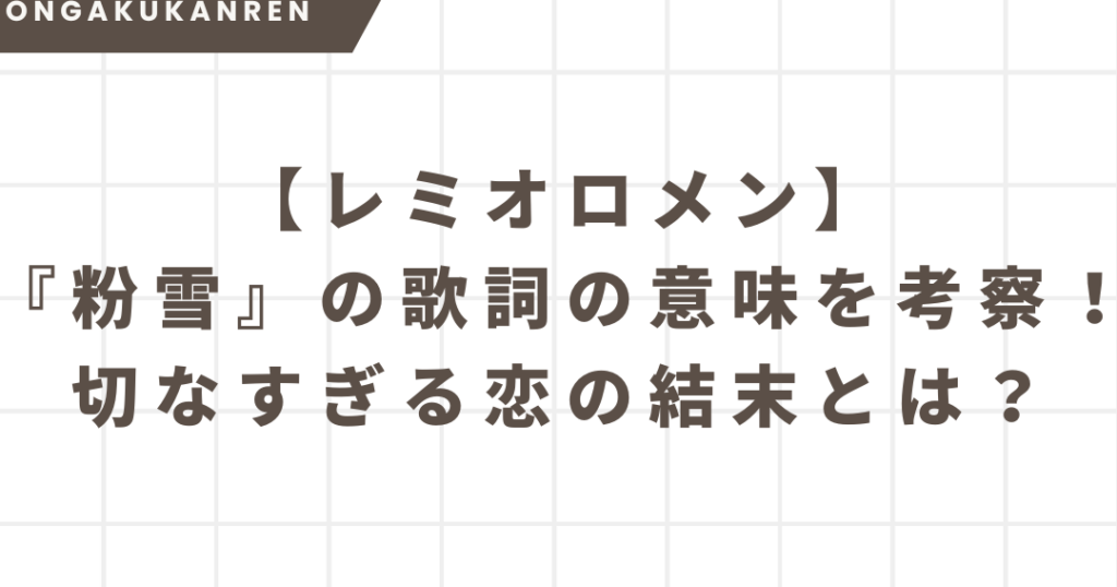レミオロメンは、2000年に結成された日本のロックバンドであり、その音楽スタイルは多岐にわたります。彼らの曲は、感情豊かで心を打つ歌詞が特徴です。「粉雪」はその中でも特によく知られた楽曲となっており、多くの映画やドラマにも使用されています。このようなメディアとのコラボレーションが、この曲への関心を高める要因にもなっています。